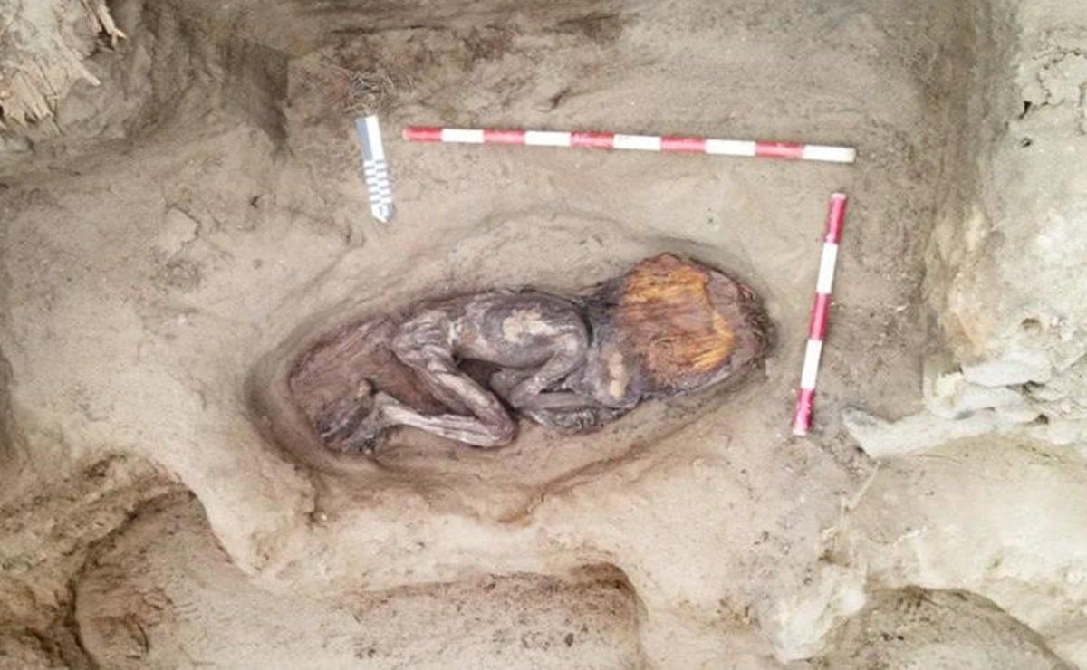Як зазначили дослідники, знахідка зроблена на археологічному майданчику Асперо, стародавньому рибальському поселенні на узбережжі Тихого океану, що входило до складу цивілізації Караль. Поховання виявлено в громадській споруді Хуака-де-лос-Ідолос.