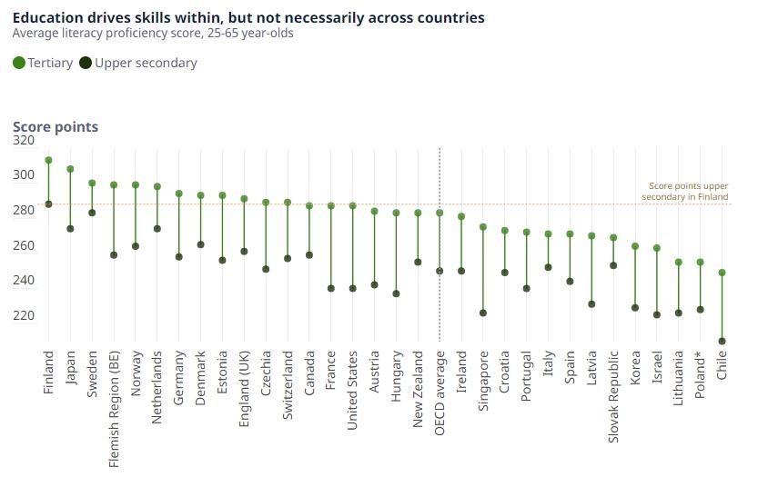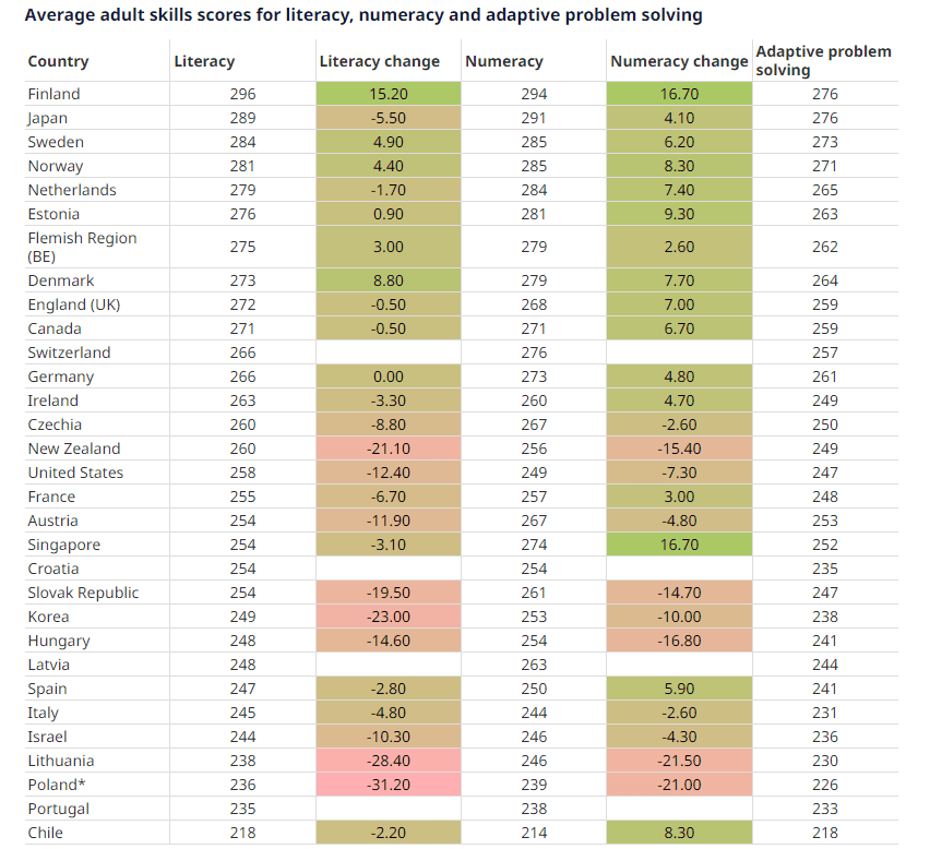 - За останнє десятиліття, середній рівень грамотності підвищився лише у Фінляндії та Данії.