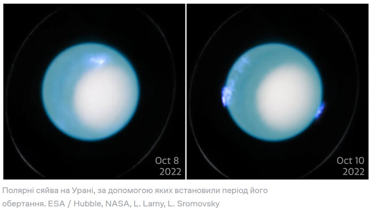 Завдяки знімкам полярних сяйв Урана в ультрафіолетовому діапазоні, зробленим «Габблом» у 2011-2022 роках, науковцям вдалося визначити період обертання з у 1000 разів більшою точністю, ніж раніше.