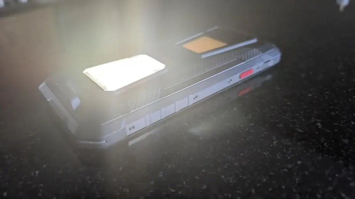 Особлива фішка моделі – подвійний кемпінговий прожектор потужністю до 1000 люменів, вбудований у задню панель. Керується цей «прожектор» через окремий додаток: SOS, максимальна яскравість, півяскравості, четверть та тепла/холодна підсвічка стануть у нагоді туристам, рибалкам або на будмайданчику.