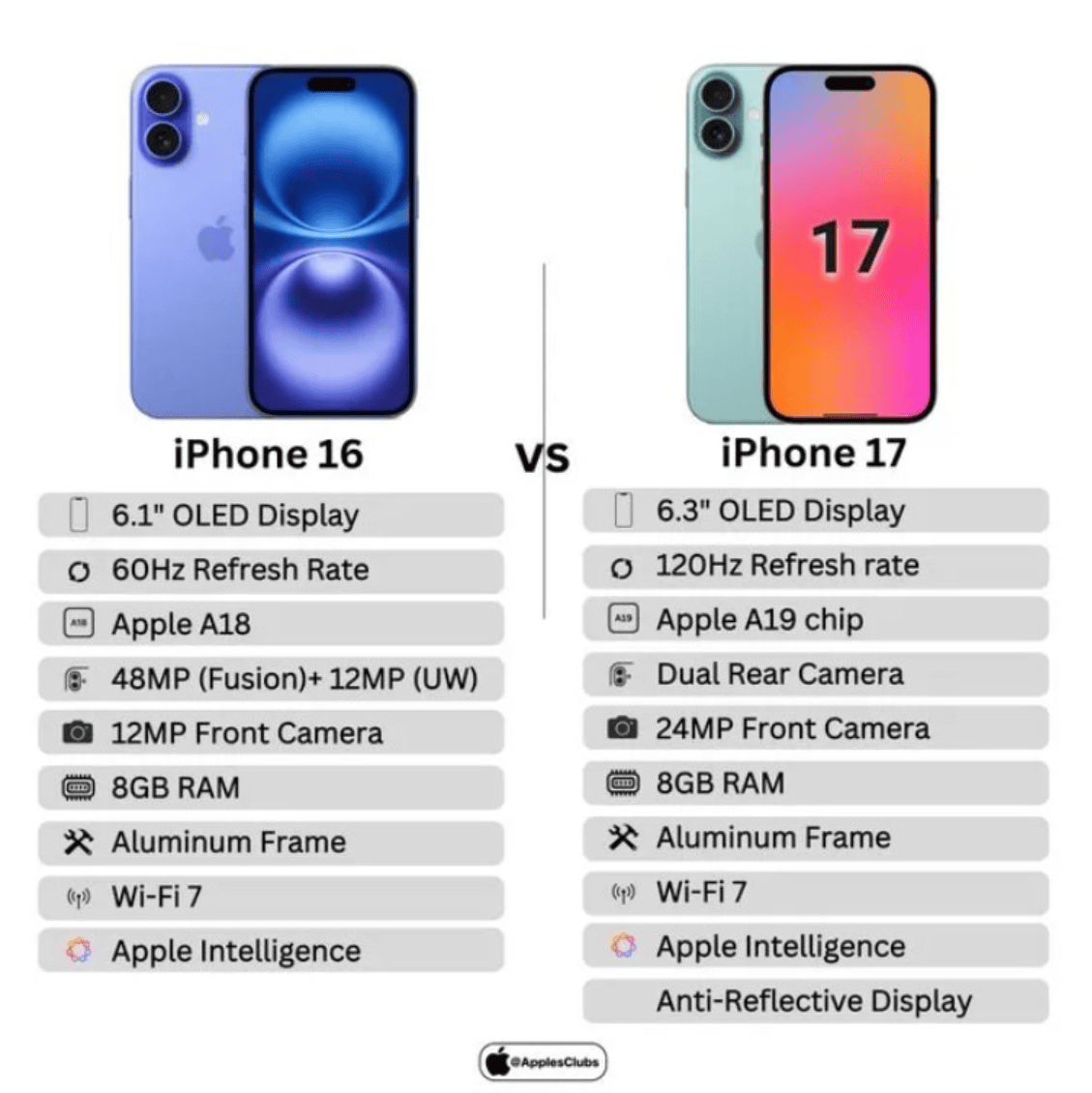 Згідно з попередніми даними, стандартний iPhone 17 може отримати дисплей розміром 6,3 дюйма, що перевищить можливості iPhone 16. Це фактично стане компромісом між компактністю iPhone 15 та більшим iPhone 15 Plus. Модель Plus, схоже, взагалі мають намір прибрати з асортименту, замінивши її на новий iPhone 17 Air. Цей смартфон буде трохи більшим за стандартний iPhone 17, але не настільки гігантським, як Pro Max, що надасть можливість знайти своїх шанувальників у середньому сегменті.