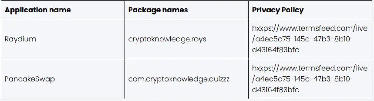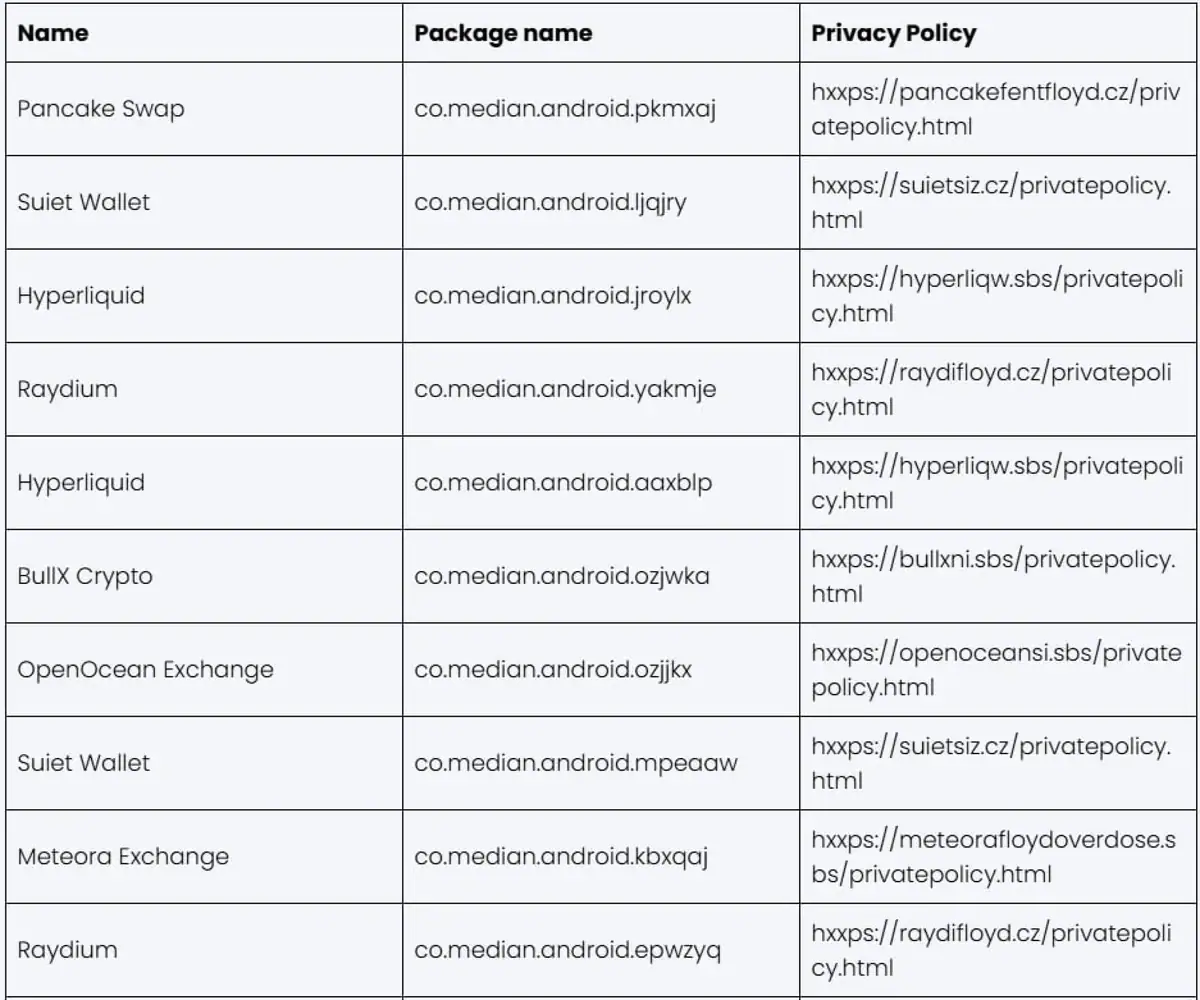 Додатково компанія надала окремий список із назвами пакетів і політиками конфіденційності, щоб користувачі могли перевірити, чи не встановили вони ризикові додатки, створені на базі фреймворку Median.